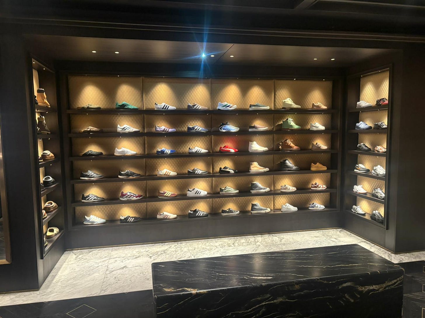 None of this is to say that bigger retailers can’t do community meaningfully. Contrast Kith with Buck Mason’s new store in NYC, where you’ll find staff encouraging you to look through the well-worn records (all carefully selected stuff like Steely Dan that fits the target perfectly) and choose a track to play, then urging you to sit on one of the massive sofas, have a free drink and relax.